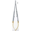Needle holders castroviejo tc , gold plated round spring handles , stright serrated jaws , with lock , 140mm